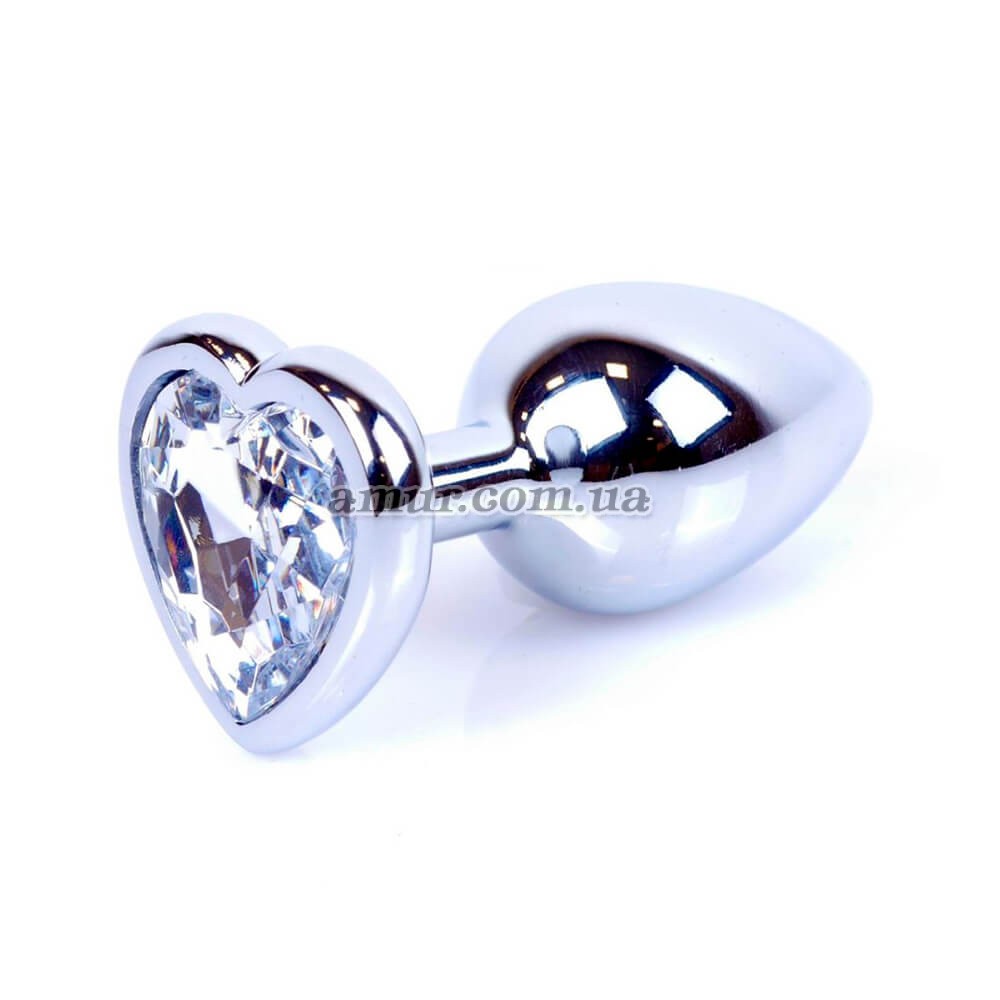 Серебристая анальная пробка с гладкой бесшовной поверхностью и кристалом в форме сердечка. Создана из высококачественного металла, медицинской стали, безопасного для здоровья. Игрушка имеет удобный размер и гладкую коническую форму, обеспечивающую легкое и безопасное пользование.