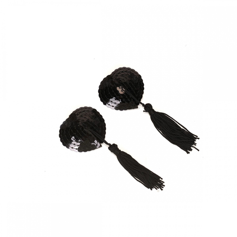 Пэстис с кисточками — украшены пайетками, фиксируются на коже с помощью клейкого слоя. Размер 4,5×4,8 см.