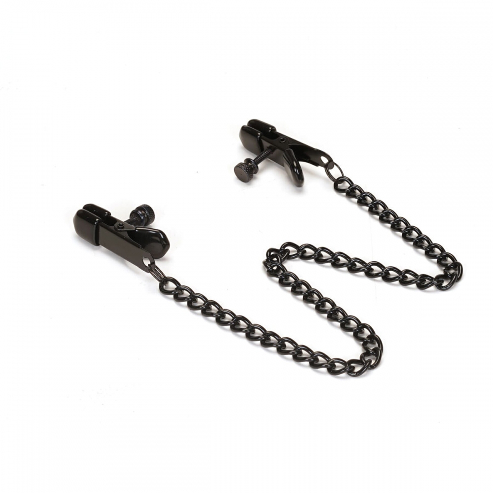 Зажимы для сосков — регулируемые, с силиконовыми накладками и декоративной цепочкой. Общая длина 43 см.
