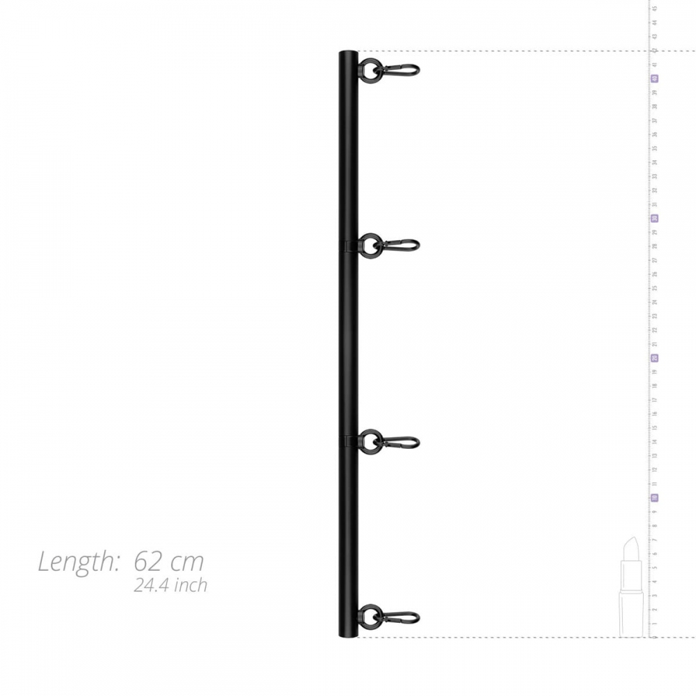 Аксессуар состоит из трёх алюминиевых труб, которые можно комбинировать, изменяя длину конструкции. На баре расположены четыре кольца с карабинами, к которым легко крепятся наручники, поножи или другие аксессуары для фиксации. Всё, что остаётся — это подключить фантазию и подобрать идеальную позу для вашего партнёра.