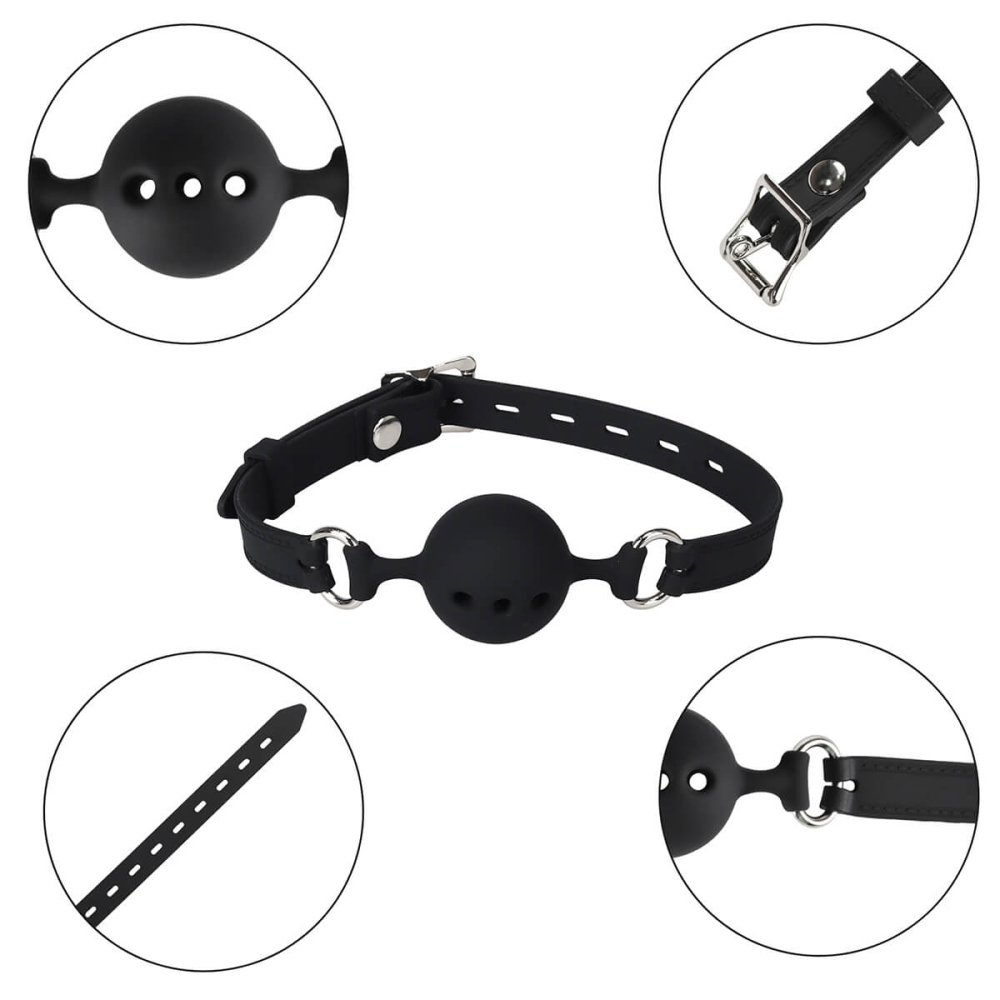 Шарик выполнен из медицинского силикона — материал безопасен для кожи, не имеет запаха и приятен на ощупь. Он мягкий и подходит для длительного ношения без дискомфорта. Регулируемый ремешок позволяет точно подогнать кляп под размер головы, а надёжная застёжка обеспечивает устойчивую фиксацию.
