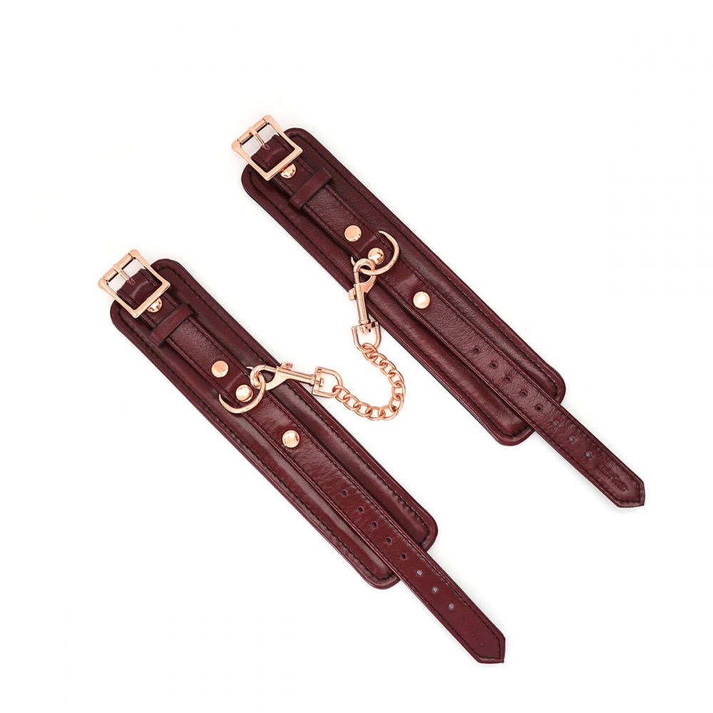 Кожаные наручники Liebe Seele Wine Red Wrist Cuffs, съемная цепочка-крепление