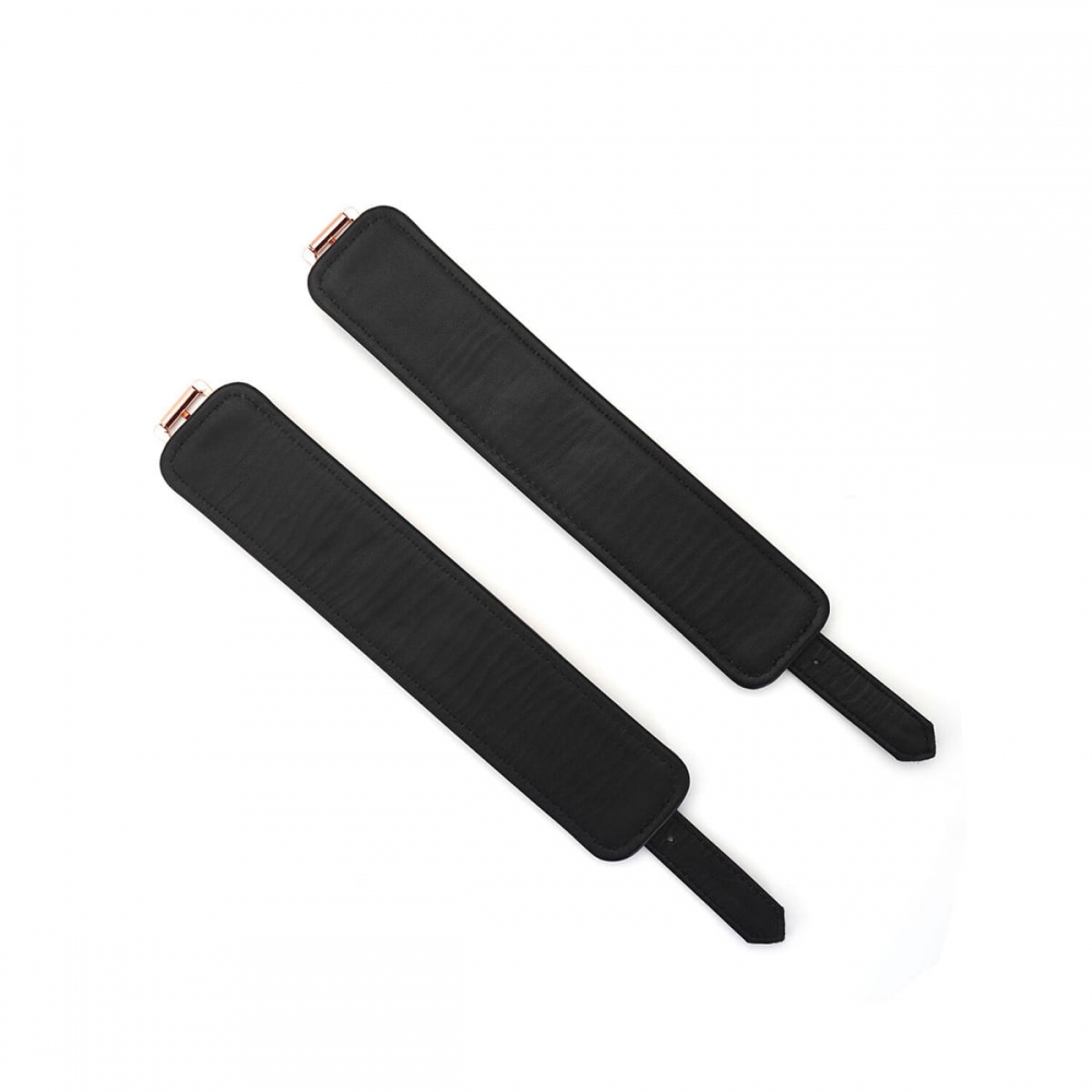 Мягкая внутренняя вставка обеспечивает комфорт даже при длительном использовании, а широкая форма надежно удерживает лодыжки, не оставляя следов и не вызывая раздражения. Регулируемые ремешки позволяют идеально подогнать размер, а съемная цепочка на карабинах открывает свободу для экспериментов — вы легко соедините поножи между собой, с наручниками или другими аксессуарами.