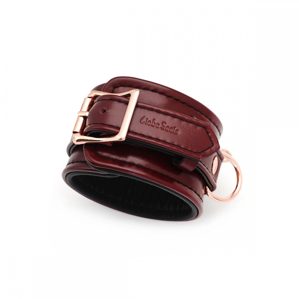 Liebe Seele Wine Red Ankle Cuffs отлично смотрятся в одиночку и идеально комбинируются с другими изделиями коллекции Wine Red — от ошейников и наручников до ремней и крестовин, позволяя воплощать самые смелые идеи.