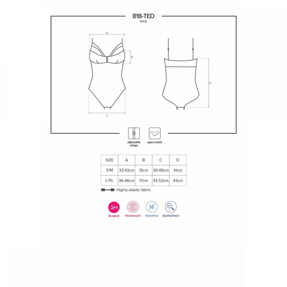 Изысканное кружевное боди Obsessive 818-TED-1 — это воплощение утончённости и страсти. Модель создана для женщин, которые ценят не только красоту, но и комфорт. Благодаря мягкому и эластичному материалу, бельё идеально облегает фигуру, подчеркивая её изгибы и придавая образу особую привлекательность.