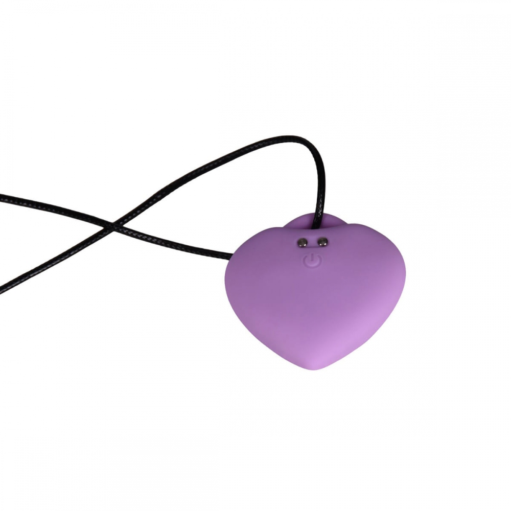 Мини-вибратор «Сердечко» FairyGasm PleasureStone, фиолетовый, 9 режимов, на шнурке