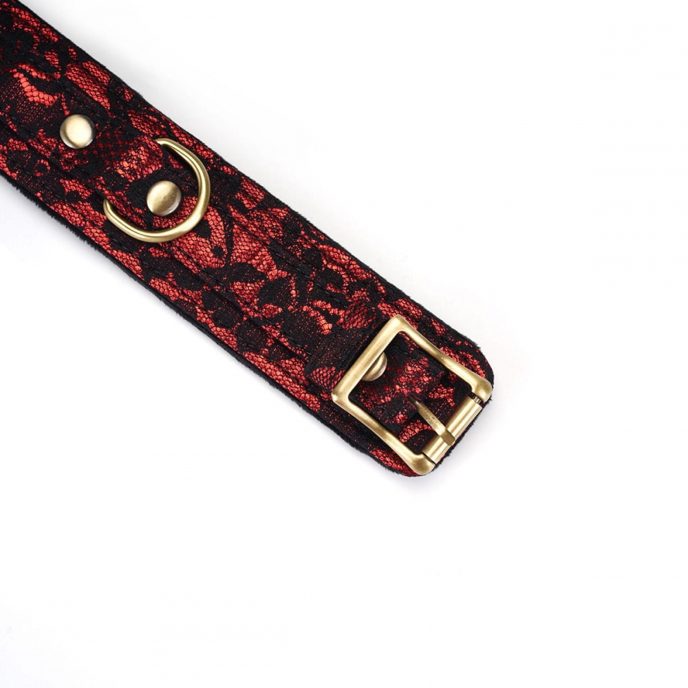 Добавьте нотку викторианского гламура в свою коллекцию аксессуаров! Элегантный ошейник с поводком Liebe Seele Victorian Garden Collar with Leash сочетает в себе роскошную красную экокожу и изящное черное кружево, подчеркивая соблазнительность и создавая атмосферу утонченной эротики.