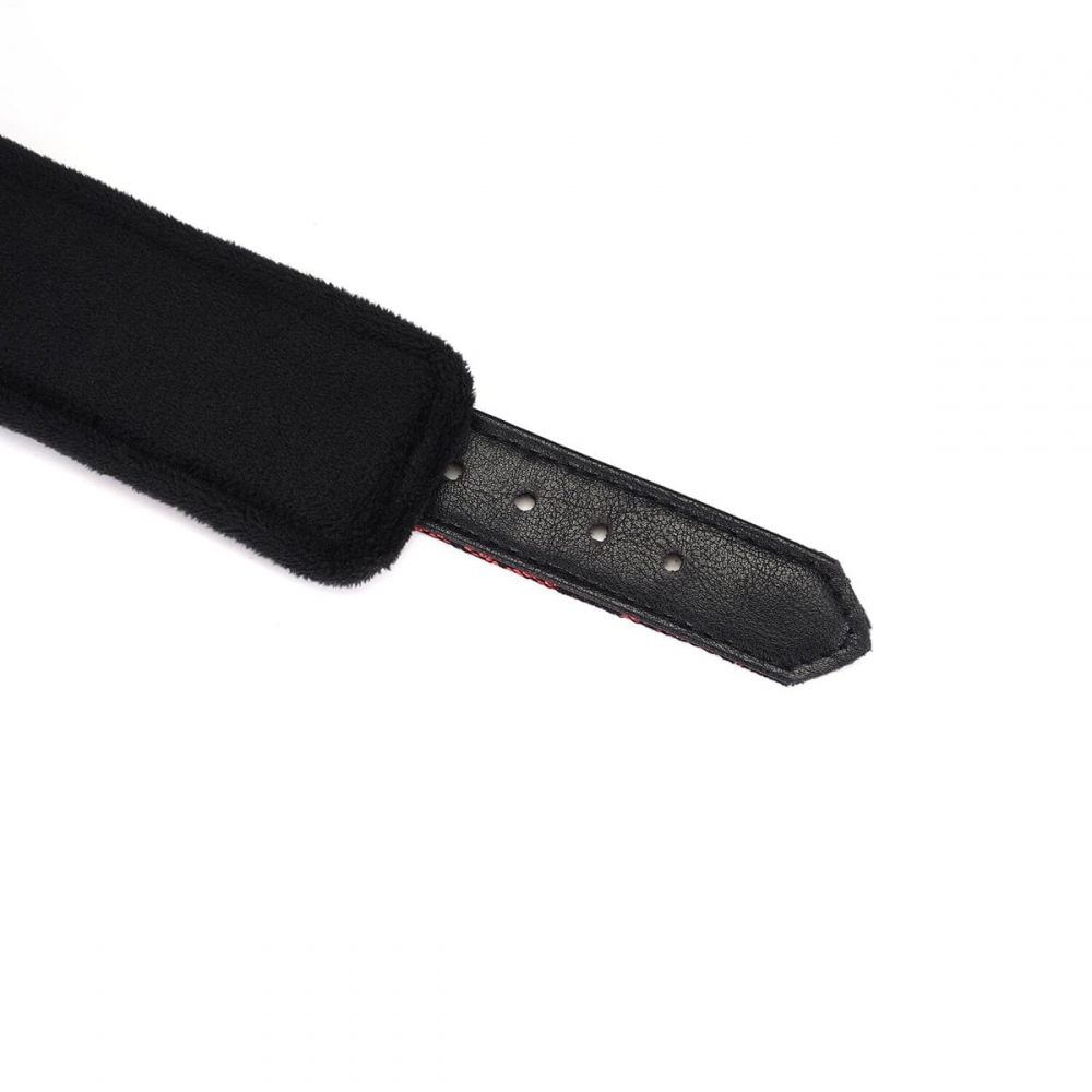 Модель оснащена мягкой подкладкой для комфортного ношения и регулируется по объему (32–45 см) с помощью надежной пряжки. Три прочных D-образных кольца позволяют использовать ошейник не только с поводком, но и с наручниками, фиксаторами и другими аксессуарами для бондажа.