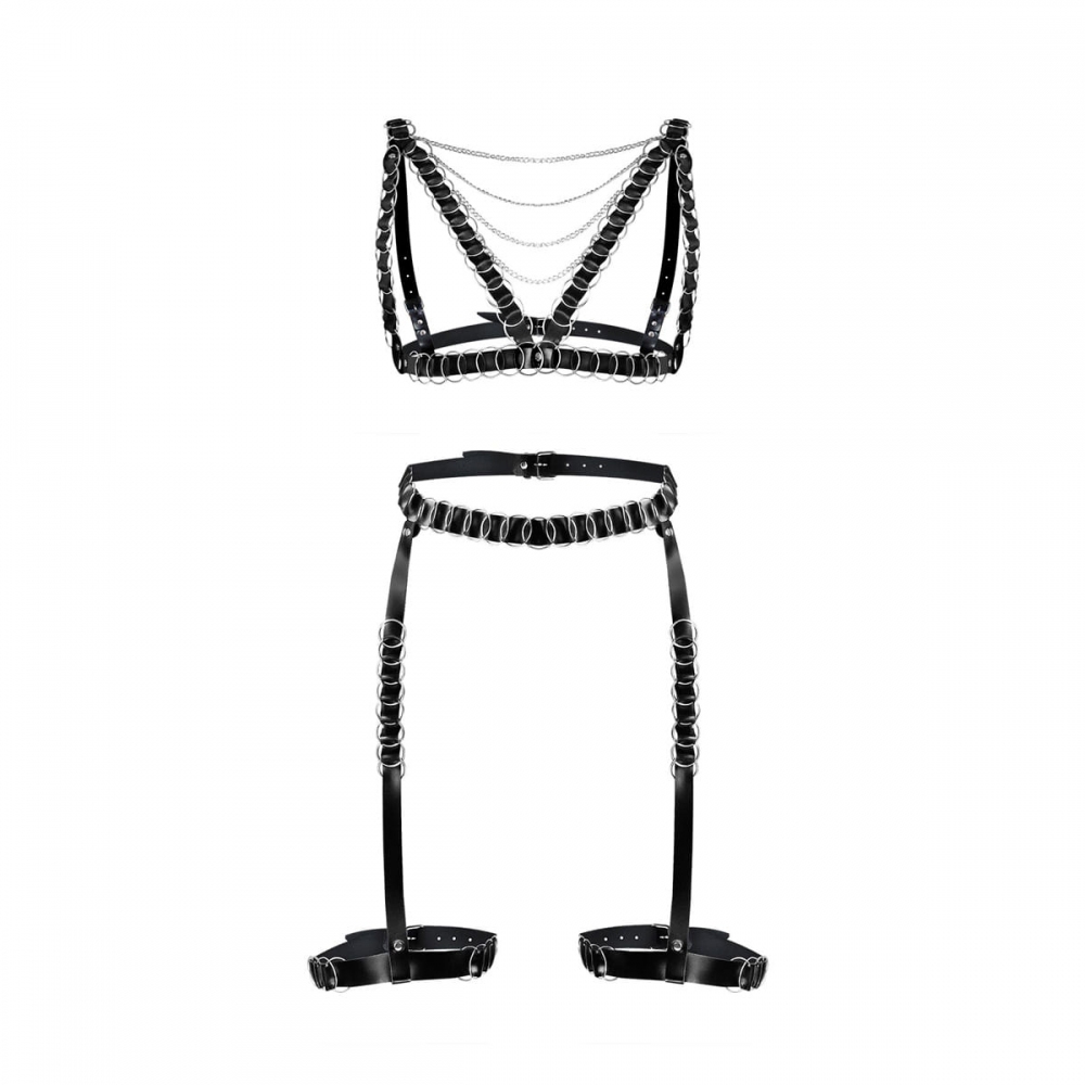 Сексуальный набор гартеры и портупея Art of Sex - Geneva украшенные кольцами