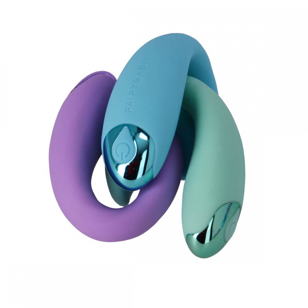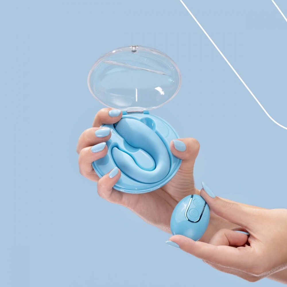 Вибратор для пар FairyGasm PleasureBerry, голубой, зарядный кейс, пульт ДУ