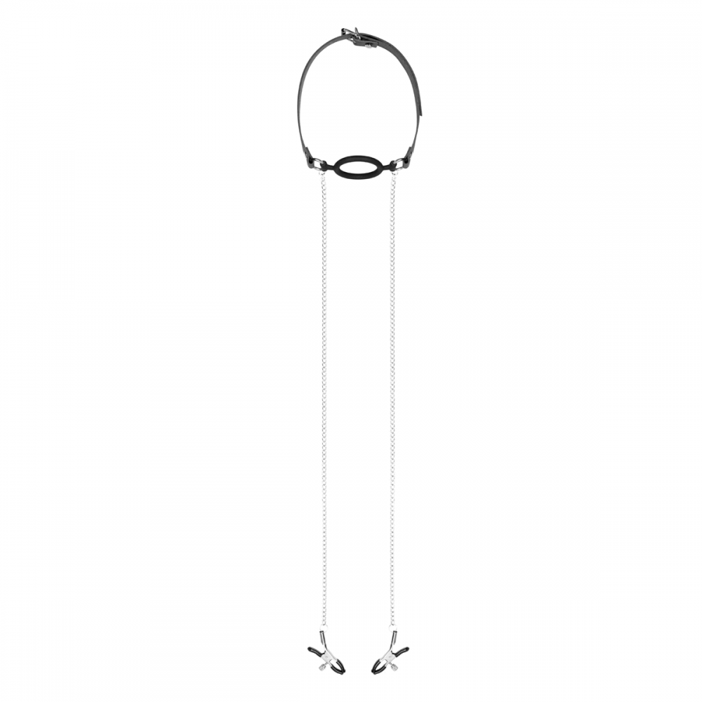 Bedroom Fantasies Nipple Clamps & Silicone Gag Ring — аксессуар для тех, кто не боится воплотить самые смелые фантазии и превратить обычную ночь в захватывающее приключение.