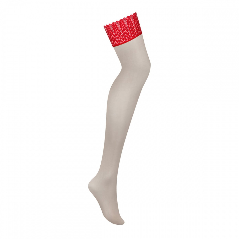 Панчохи Obsessive Ingridia, бежеві з червоною гумкою