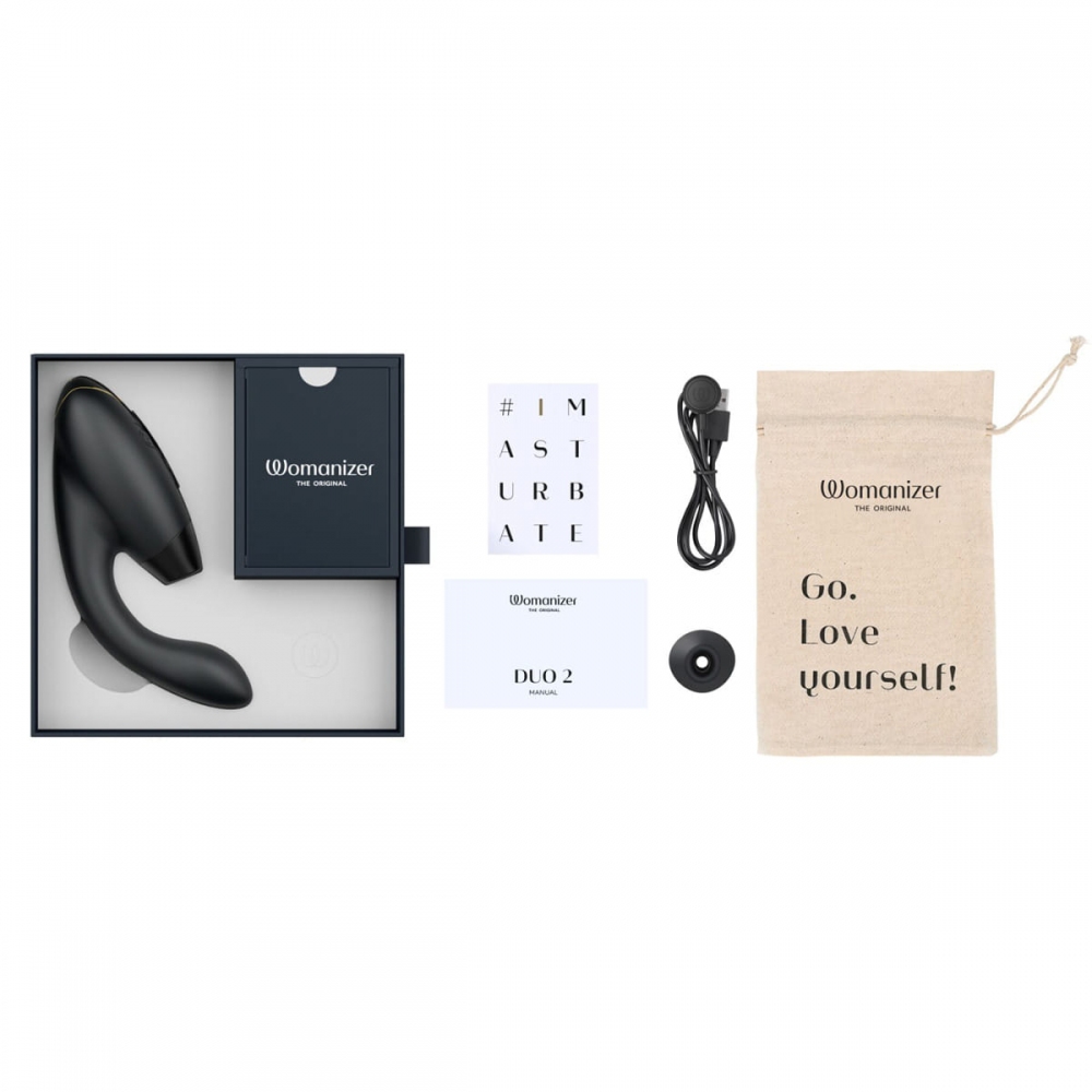 Подвійний вакуумний кліторальний стимулятор з вібрацією Womanizer Duo 2, чорний