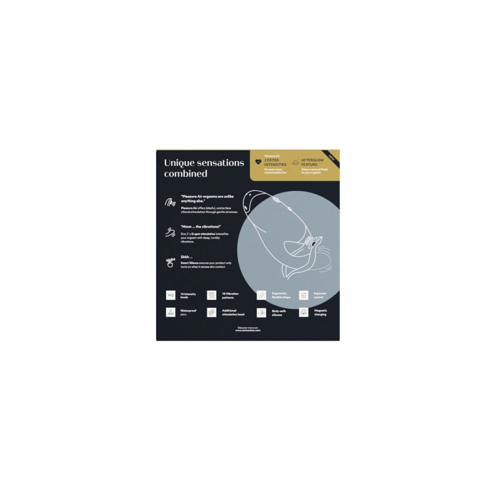 Фірмова технологія Pleasure Air працює на 14 рівнях інтенсивності, створюючи безконтактну повітряну стимуляцію, а 10 режимів вібрації ствола відкривають десятки комбінацій насолоди. Два незалежні двигуни дозволяють використовувати стимуляцію окремо або одночасно.
