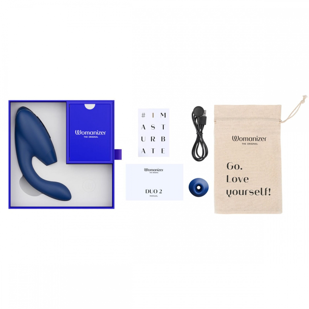 Подвійний вакуумний кліторальний стимулятор Womanizer Duo 2, синій, незалежні двигуни