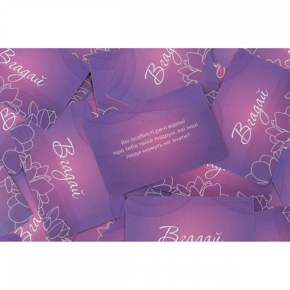 Грати дуже просто: учасниці по черзі тягнуть картки з двох колод — «Розкажи» та «Вгадай». Перші пропонують поділитися спогадами, мріями та фантазіями, а другі перевіряють, наскільки добре подруги знають одна одну, їх переживання та бажання.