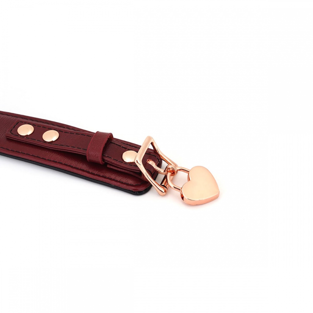 Шкіряний нашийник з повідцем Liebe Seele Wine Red Curved Collar, замок-серце