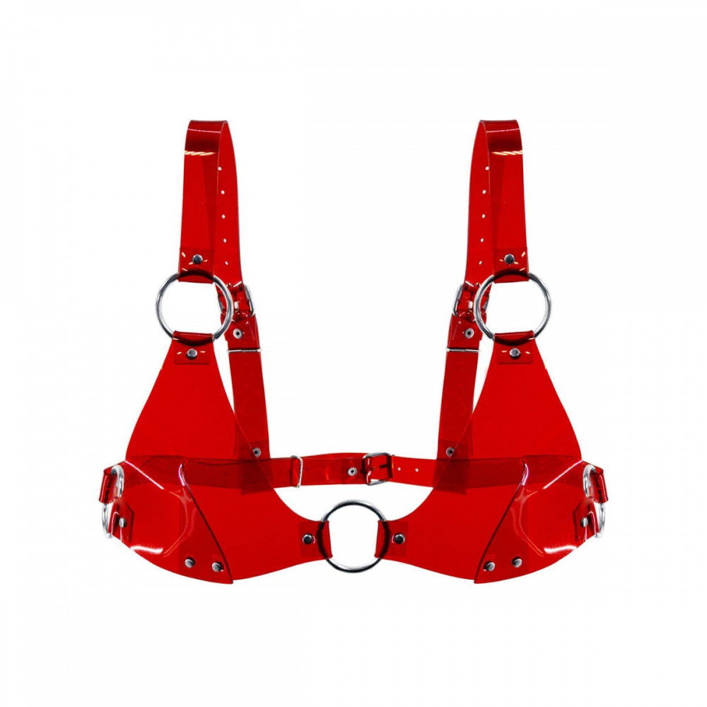 Виготовлений з екологічно чистого ПВХ без фталатів, топ безпечний для шкіри та відрізняється приємною текстурою. Матеріал легко очищається, не боїться вологи і має глянцевий блиск, який можна порівняти з латексом або лакованою шкірою. Завдяки цьому аксесуар виглядає по-справжньому ефектно та стильно.