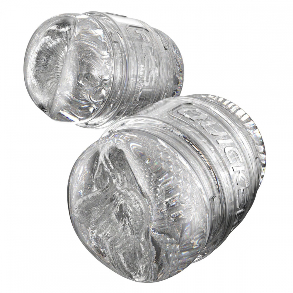 Два спокусливі входи та наскрізна конструкція роблять Quickshot відмінним вибором як для соло-насолод, так і для ігор з партнеркою - наприклад, під час оральних ласок. Внутрішній канал виконаний з фірмового матеріалу SuperSkin, який неймовірно точно імітує шкіру та дарує відчуття повного занурення. Рельєф із горбками, гребенями та ребрами інтенсивно стимулює кожен сантиметр, посилюючи збудження.