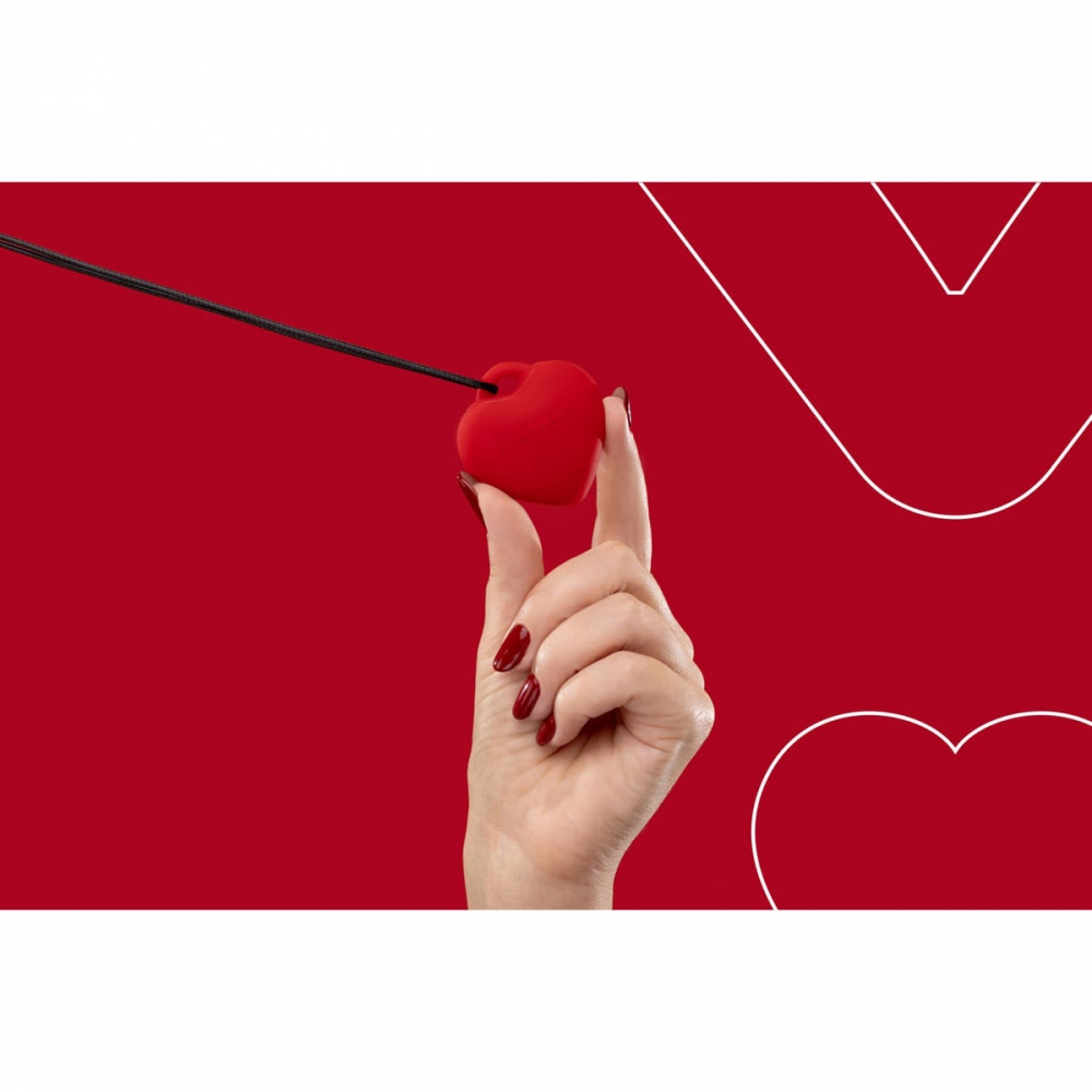 Міні-вібратор «Серце» FairyGasm PleasureStone, червоний, 9 режимів, на мотузці