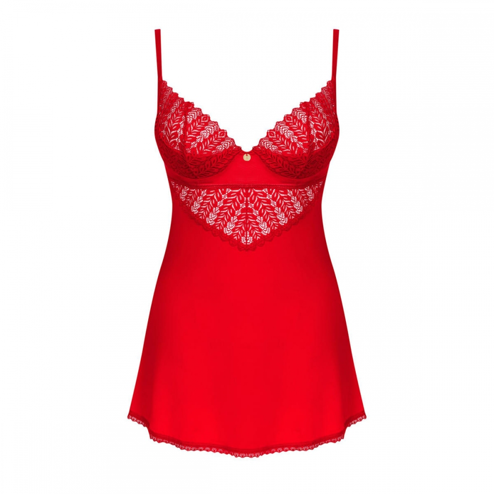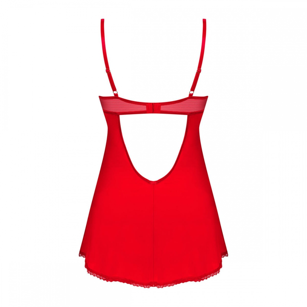 Пеньюар Obsessive Ingridia chemise & thong, червоний, сорочка, стрінги