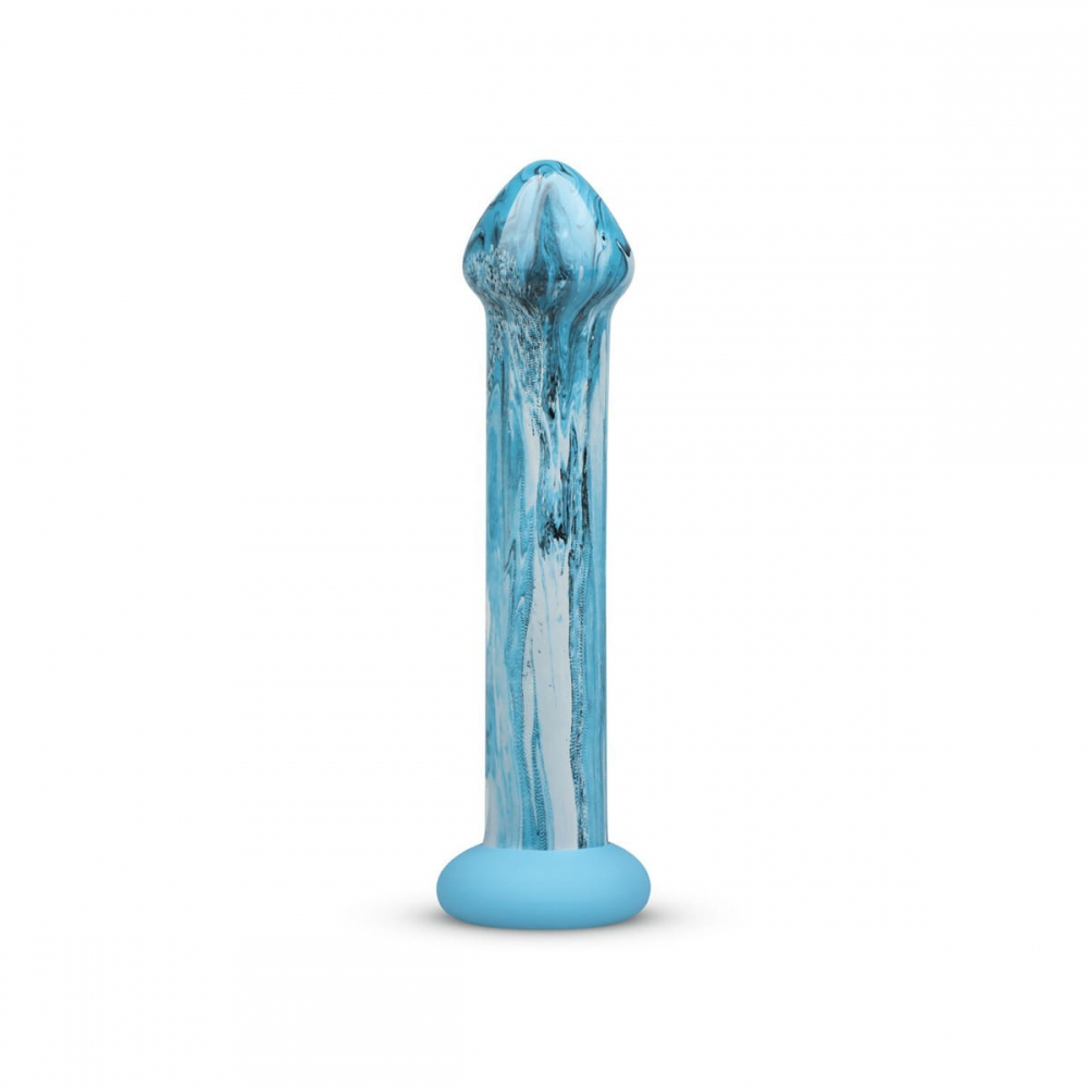 Хочете поєднати естетику та насолоду? Спробуйте скляний дилдо Gildo Ocean Ripple. Його дизайн з блакитними хвилями виглядає по-справжньому чарівно і додає інтимним іграм вишуканості.