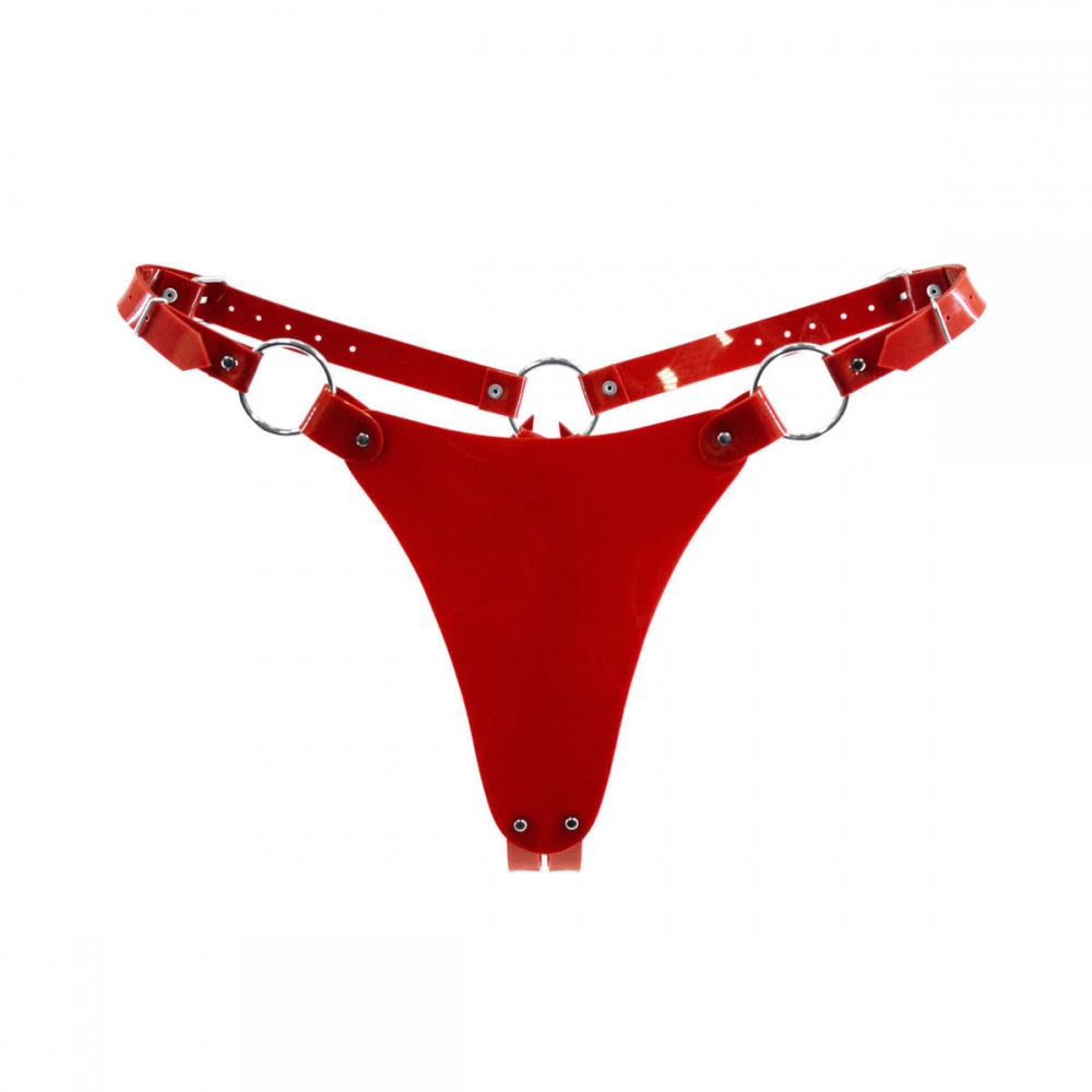 Виготовлені з екологічного ПВХ без фталатів, трусики безпечні для шкіри, приємні на дотик та практичні у догляді. Матеріал легко очищається і зберігає насичений глянсовий блиск, який можна порівняти з латексом або лакованою шкірою. Завдяки цьому виріб виглядає ефектно та стильно в будь-яких умовах.