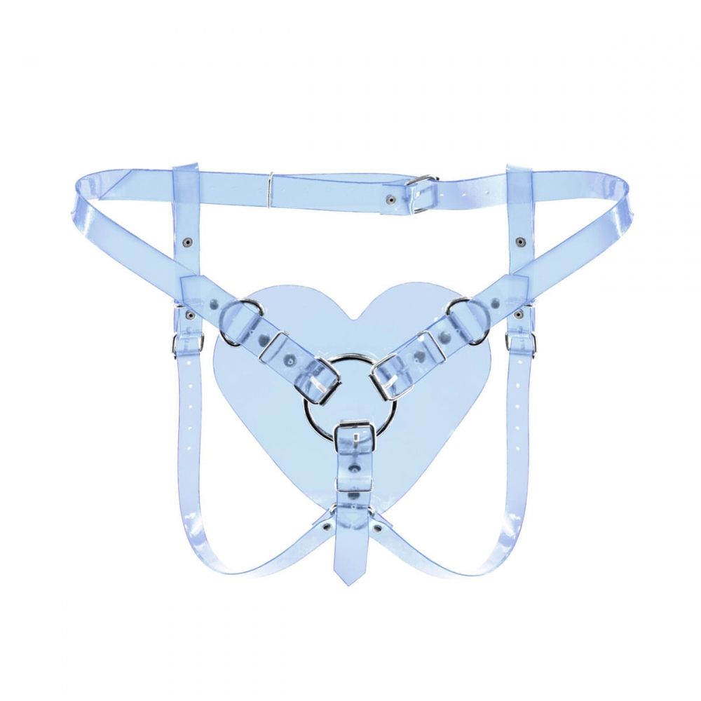Трусики Серце для страпона Feral Feelings - Hearts Strap-on Belt, блакитні, прозорі