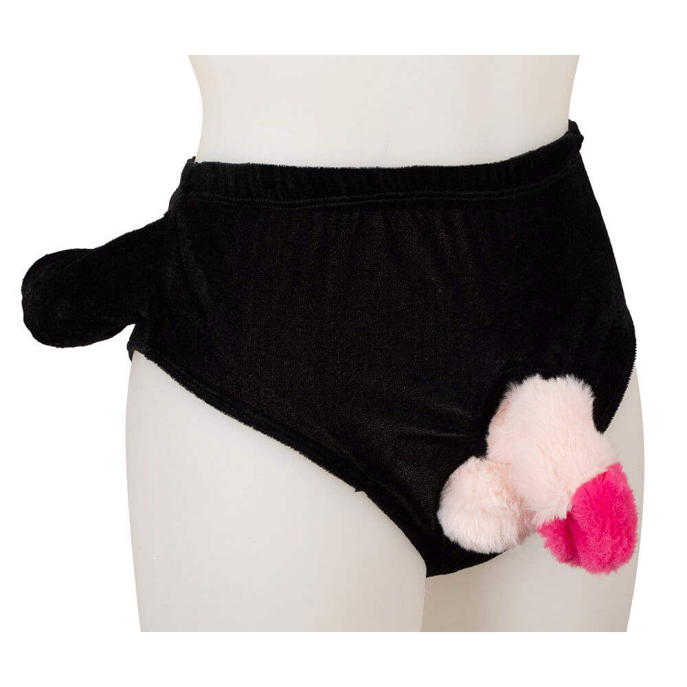 Чорні труси оснащені м'яким плюшевим елементом із надувним механізмом. Достатньо натиснути на приховану ручну помпу, щоби аксесуар миттєво «ожив» і викликав посмішки у оточуючих. Це простий і ефектний спосіб додати гумору та веселощів у святкову атмосферу.