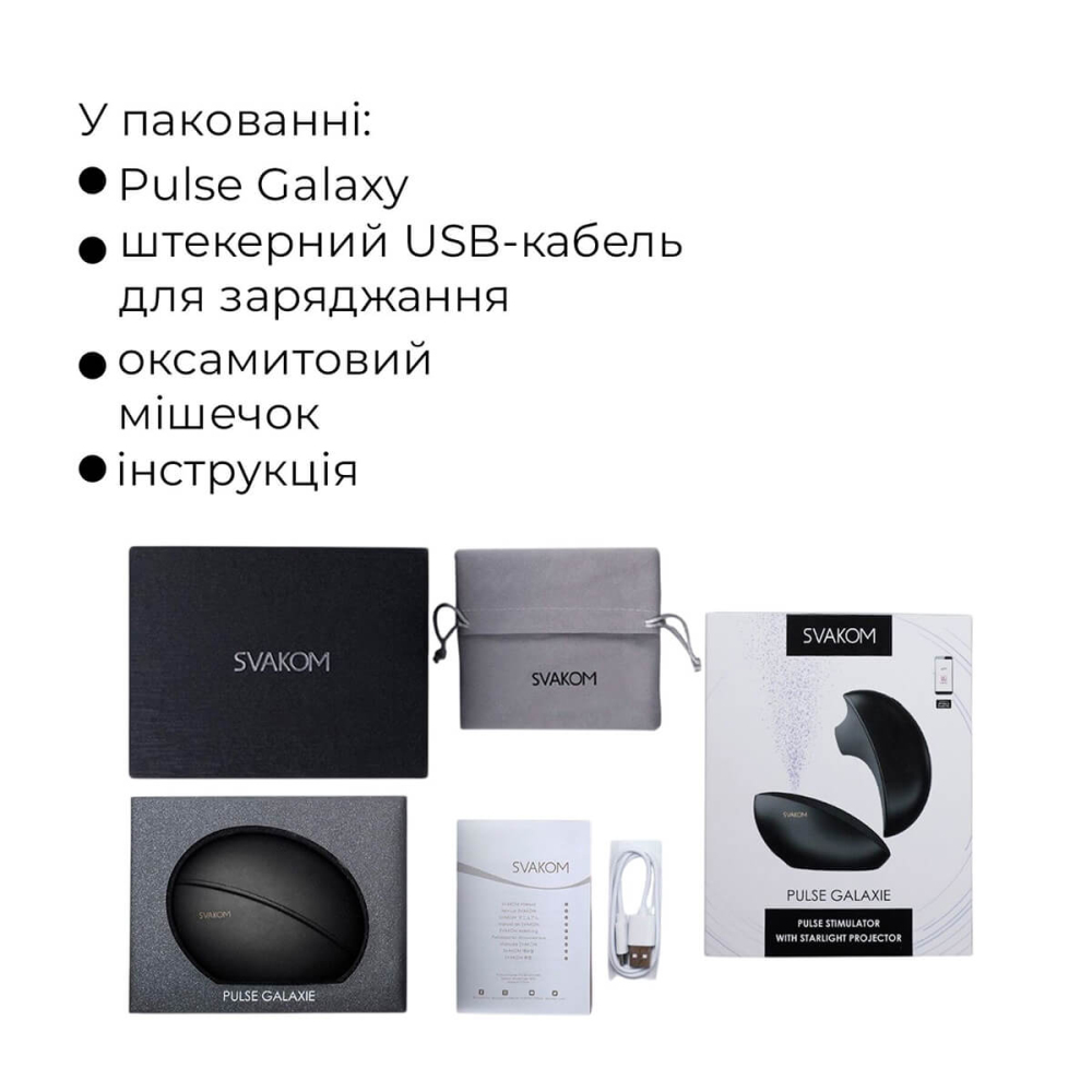 Вакуумний кліматичний смарт-стимулятор Svakom Pulse Galaxie Midnight Black, проектор зоряного неба