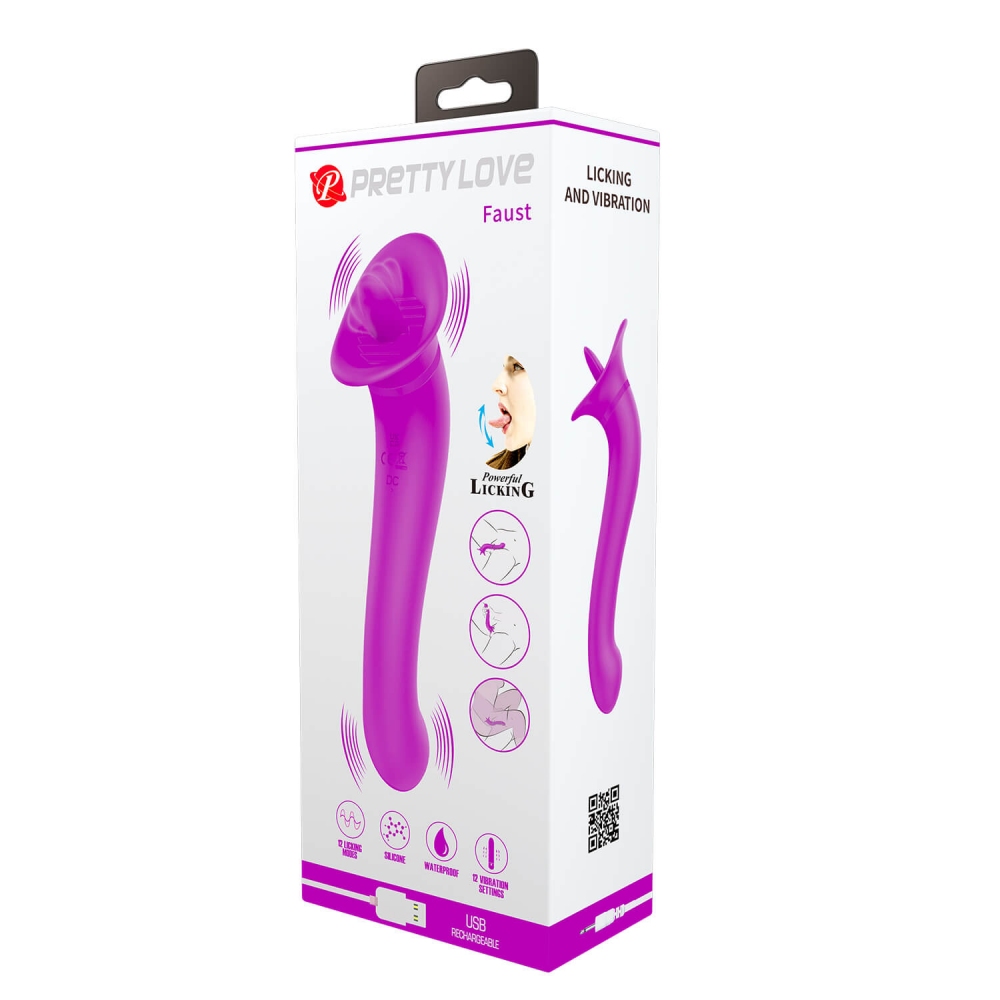 Pretty Love Faust - вишуканий вібромасажер, створений для чуттєвих експериментів та максимально реалістичних відчуттів. Він поєднує в собі ергономічний вібратор і гнучкий язичок, що ніжно пестить інтимні зони, імітуючи оральну стимуляцію.